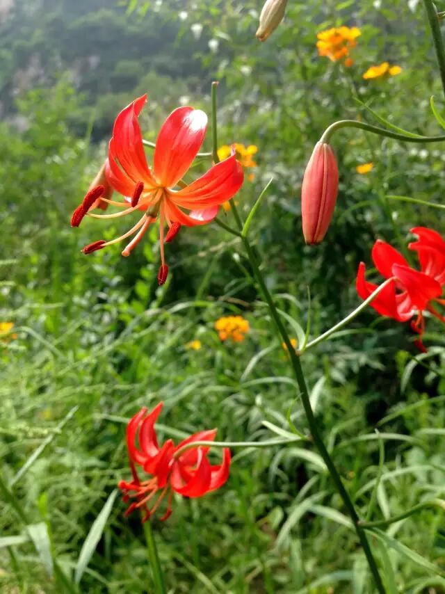 山丹L. pumilum是中国北方广布的种,和川百合有点像,但花和鳞茎都小很多。能吃,但吃它获得的能量可能还不如挖它消耗的多。