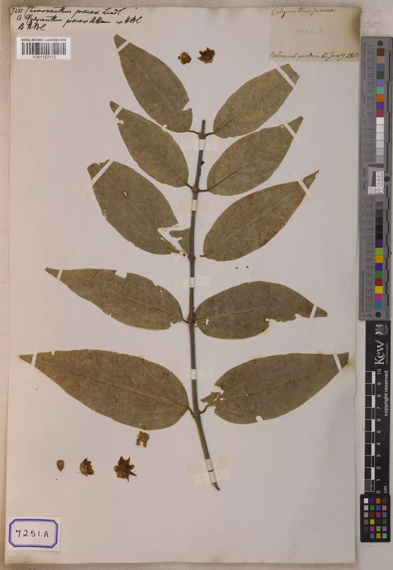 邱园中保存的蜡梅的腊叶标本。是的,在这里你可以看见它叶对生的特征。(平时根本注意不到好嘛摔!)图片:kew.org
