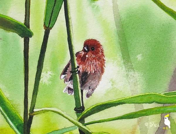 根据上图我还画过一张自己非常喜欢的水彩棕头鸦雀宝宝: