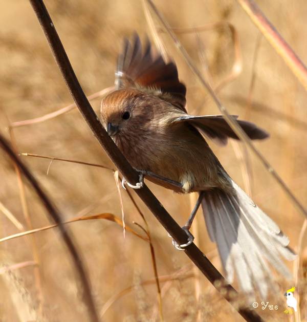 北京野鸭湖的棕头鸦雀宝宝,尾羽还没长好,非常短。摄影:鹰之舞