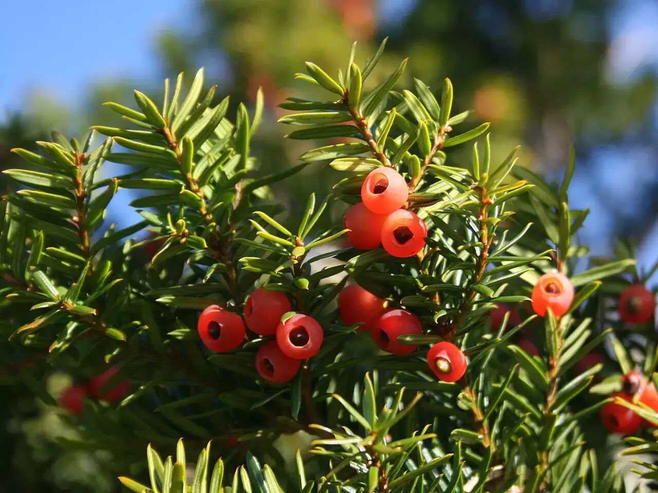 不过不要看鸟儿们吃得欢你也就忍不住随手摘两颗吃了,实际上,你很有可能因为这些果子中毒。虽然严格来说,红豆杉红色的浆果部分是无毒的,但是不小心咬碎种子的话,种子里所含的紫杉碱对人类来说是致命的(一会儿再说为啥又变紫了这回事)。紫杉碱其实是多种生物碱的混合物,不过这些成分都可以迅速被人体吸收并作用于心脏,造成血压降低乃至呼吸困难、心跳停止。实际上不止是种子有毒,除了红色的部分红豆杉整个都不能吃,不论是叶子、树皮还是什么。