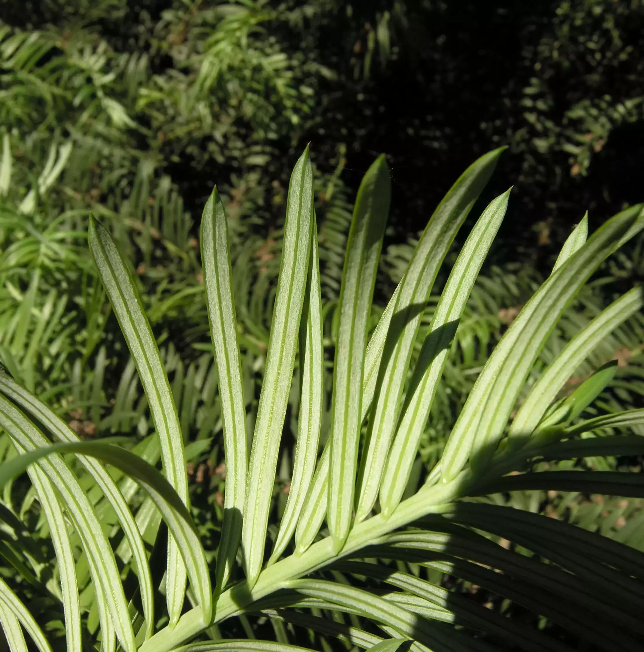 最早的时候,三尖杉被当作是红豆杉下的一属——的确,在不开花结果的时候,三尖杉的叶子和昨天介绍的红豆杉颇为类似。,现在,它们已经独立出来,组成了自己的三尖杉科——毕竟一旦结果,它们的真实身份就瞬间暴露了。