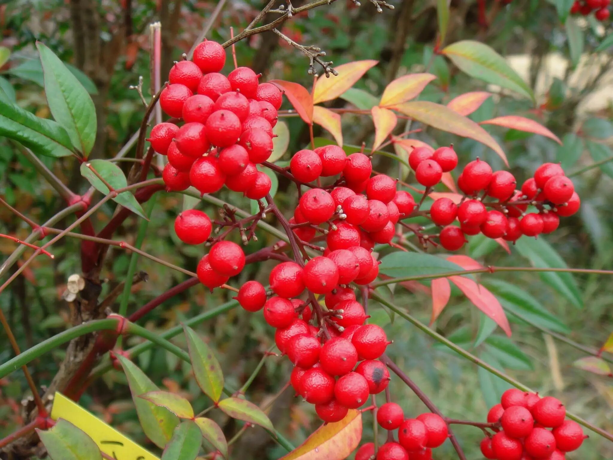 南天竹(Nandina domestica),虽然听起来像是竹子的一种,但是它和竹子完全没有关系。这种常绿的小灌木从分类学上来说,属于小檗科南天竹属,是一种双子叶植物,和属于禾本科的单子叶植物竹子们可以说从最开始就分道扬镳了。只是因为它的茎少分支,从根部丛状生出,高一至三米,和一些瘦弱的竹子株形颇有几分类似;而且南天竹的三回羽状复叶小叶的形状也多呈披针形,不仔细看的话,似乎也和竹子的叶子也有那么几分相像。