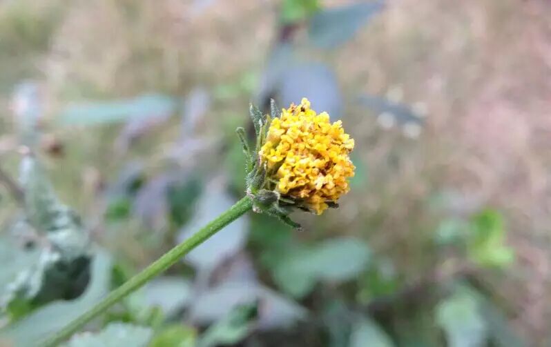 鬼针草原变种 Bidens pilosa var. pilosa 的一个花序,没有舌状花而只有筒状花。(来源:自摄)