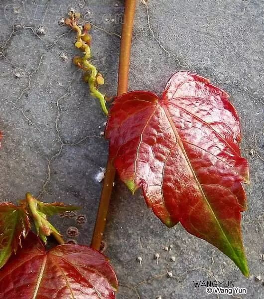 同一株地锦上的叶也并不都是三凸的,有时着生在长枝上的叶倒卵形急尖有粗锯齿而不裂。(来源:plantphoto.cn/tu/4827)