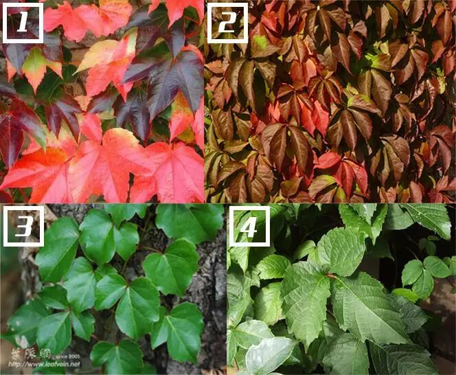 哪种“爬山虎”才是地锦 P. tricuspidata 呢?(来源:1.meres-fees.ca;2.de.academic.ru;3.leafvein.net;4.zh.wikipedia.org)
