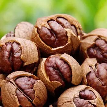山核桃不是变小的核桃,它们是胡桃科山核桃属的成员,算起来也是核桃们的表兄弟。只是山核桃的个头就更小了,通常只有红枣那么大。并且山核桃的果皮更硬,紧紧地把种仁包住。所以,要想吃到可口的山核桃肉还真需要有耐性的。