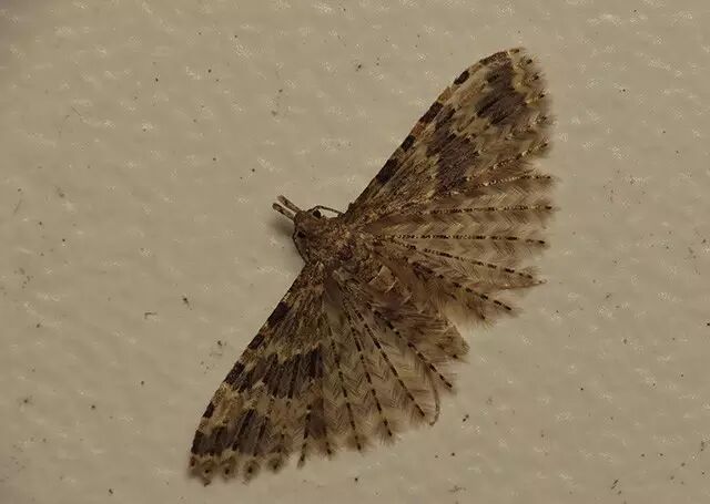 最后说一下翼蛾科(Alucitoidea)这个奇葩,在英语里称为多羽蛾(many-plumed moth),该科飞蛾的翅膀非常之任性,前翅分为6片,后翅分为6-7片,看上去好像许多羽毛从一个点生长出来,毛下面是否还有膜质连接,已经看不出来了。