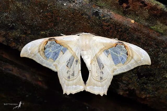 剩下还有一些种类,不是全部透翅,跟鹿蛾一样,是在翅上凿出破洞,多数比较难看,少数洞开得比较工整。譬如乌桕大蚕蛾(Attacus atlas),翅膀上的三角洞十分标志。