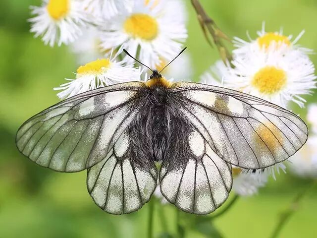 国内蝴蝶里,颇有一些非常艳丽的种类,但透明翅者寥寥无几。冰清绢蝶(Parnassius glacialis)可算是唯一称得上略透明的(有时候就根本不透明),也是国内分布最广的一种绢蝶。冰清二字还比较名符其实,但浑身黄黑相间的长毛略显粗犷。