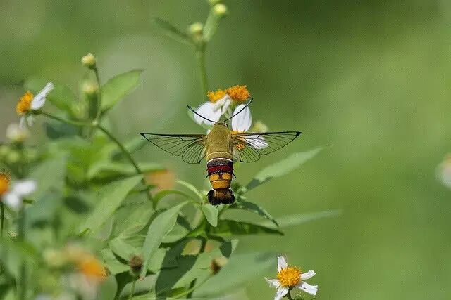 最有名也最常见的一种透明翅的蛾子非咖啡透翅天蛾(Cephonodes hylas)莫属,也是经常被当作蜂鸟的蛾子之一。