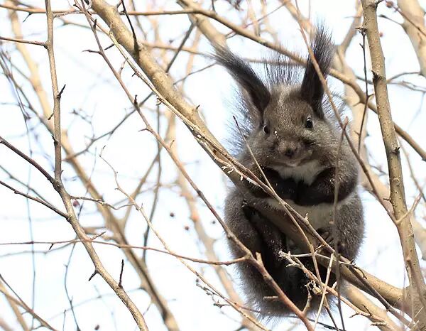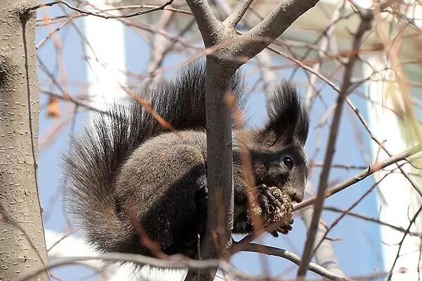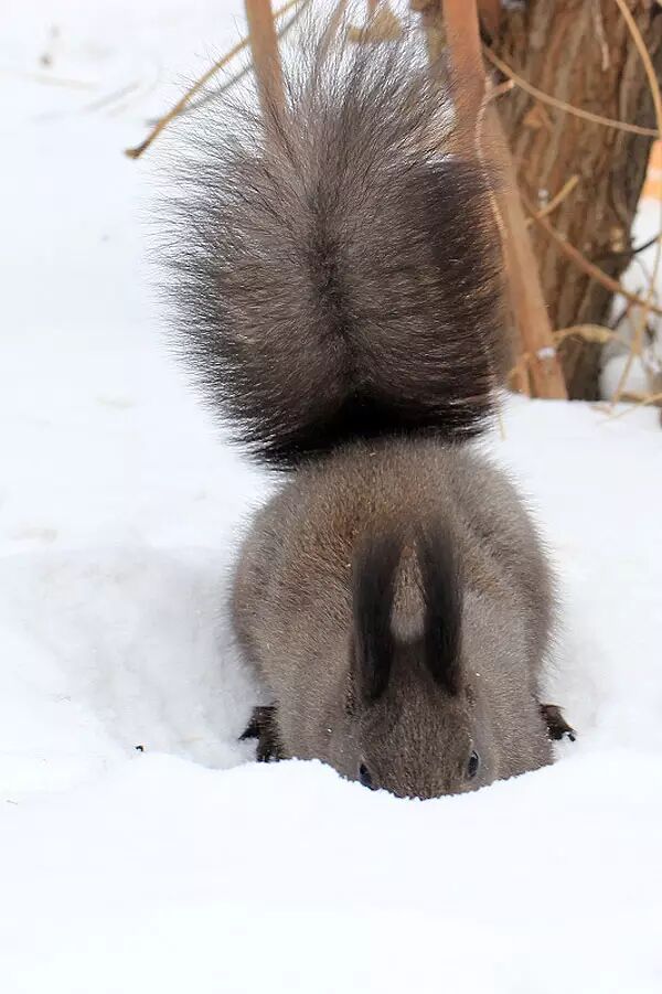 除了让人尖叫的家鼠和田鼠,北方城市中最容易碰到的小兽,非松鼠莫属。冬天里,花鼠已经宅进地洞呼呼大睡,雪地上只留下北松鼠忙碌的身影。北松鼠更正式的名字是“欧亚红松鼠东北亚种”( Sciurus vulgaris var. mantchuricua ),因为冬季黑色的毛皮和耳上的两簇长毛,在宠物市场上,它们拥有“魔鬼松鼠”的鼎鼎大名。