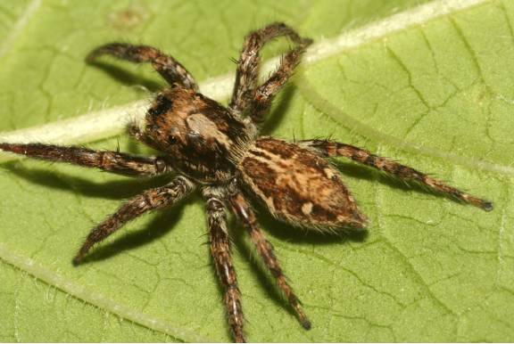 跳蛛科为蜘蛛目第一大科,约有5000多种,大部分是日行性的游猎蜘蛛,通过高度发达的视力和极强的弹跳力捕食。褐条斑蝇虎可以捕猎比它大好几倍的昆虫,如德国小蠊,也可以捕食苍蝇,是控制家居害虫的好帮手。它们一般不织网,但不代表它们不会利用丝,很多跳蛛会拉一根丝当安全绳,这样在高处捕猎的时候,如果没扑中猎物,安全绳会把它们挂住,不至于摔到地上去。