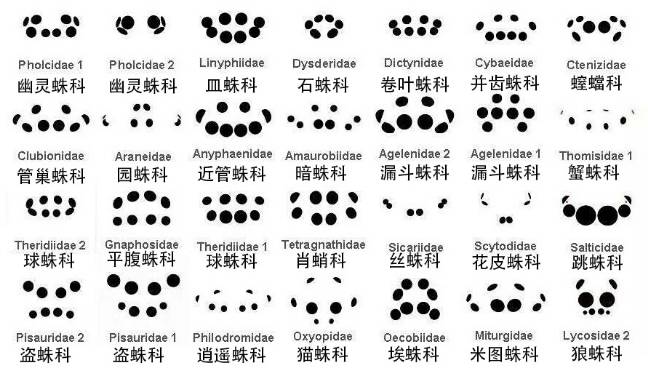 附:蜘蛛目部分科眼列示意图,已翻译好请放心食用。