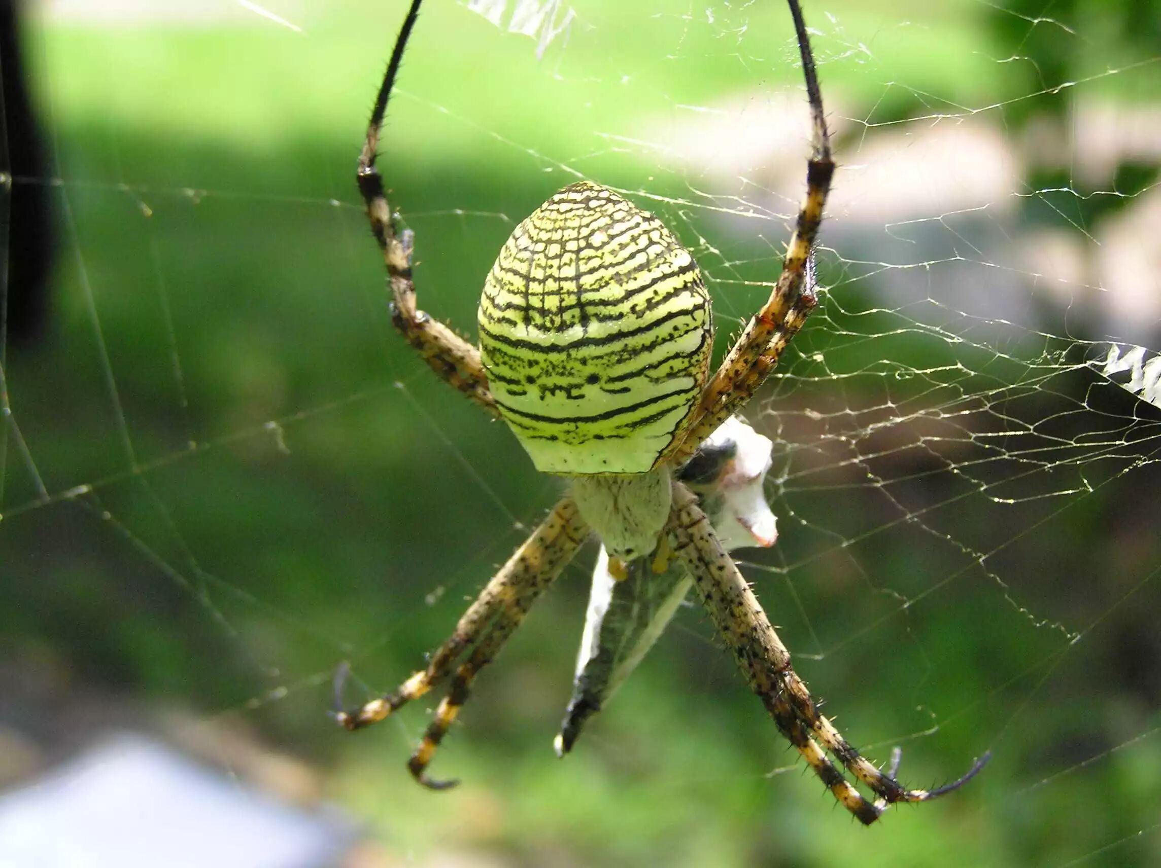 而另一种说法,即“诱捕说”则有更多的实验支持。人们发现这些白色的条带对于紫外线有更高的反射能力,而许多昆虫对于紫外线则具有趋性。通过测量人们发现,体型较大的、需要更多猎物的金蛛,有更高概率编织出这些条带,并且具有这些条带的蛛网,比没有条带的蛛网能多捕获约60%的猎物。不过“成也萧何败萧何”,一些金蛛的天敌,如捕食性蜂类,则可根据紫外线信号来捕捉金蛛,研究显示,具有编织条带的蜘蛛被黄蜂攻击的可能性比没有条带的高近一倍,因此这也能解释为何只有一部分金蛛会编织这显眼的条带。