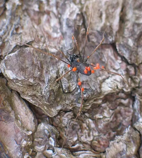 你也许要问了,我为啥真没见过?盲蛛太人畜无害,所以必须低调以躲避捕食者。所以大多数盲蛛是夜行性的,白天更多是躲在石缝树皮里。而且为了御敌,很多种类的盲蛛喜欢群居,这样既可以分散被吃掉的风险,还可以让臭腺分泌的不良气味加强,有点臭味是盲蛛唯一主动的防御手段了。多喜欢群居?从几百只一群到几千只一群都有。