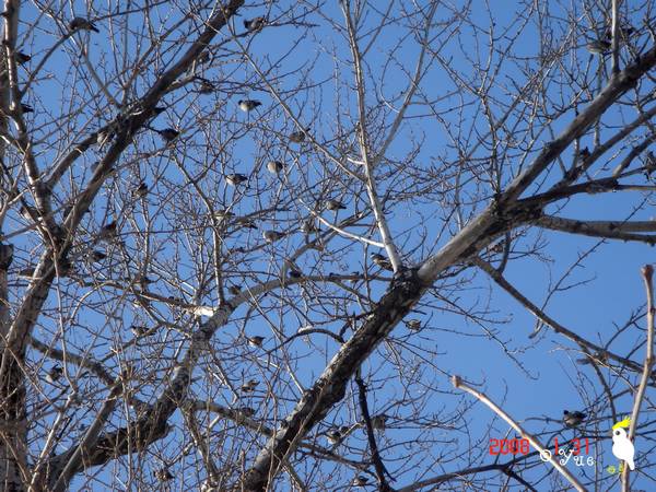 在东北越冬的成群的太平鸟(摄影:@鹰之舞 )