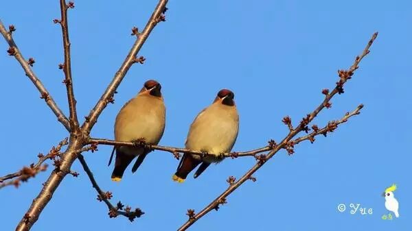 在瑞典越冬的步调一致的两只太平鸟(摄影:@鹰之舞 )
