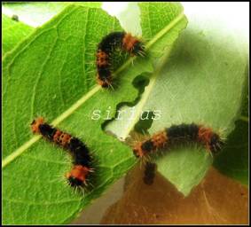 不像蝴蝶,蛾的食性一般都很广,绿尾大蚕蛾的食谱里包括枫香、柳树、山毛榉、橡胶、樱、火炬树、樟树等等,因此很常见,也很好养活。另外,就像初养蝴蝶的人会错过一些蝴蝶的低龄幼虫一样,绿尾大蚕蛾的低龄幼虫跟高龄也完全不一样,容易被当成其它普通的毛虫。如下图。