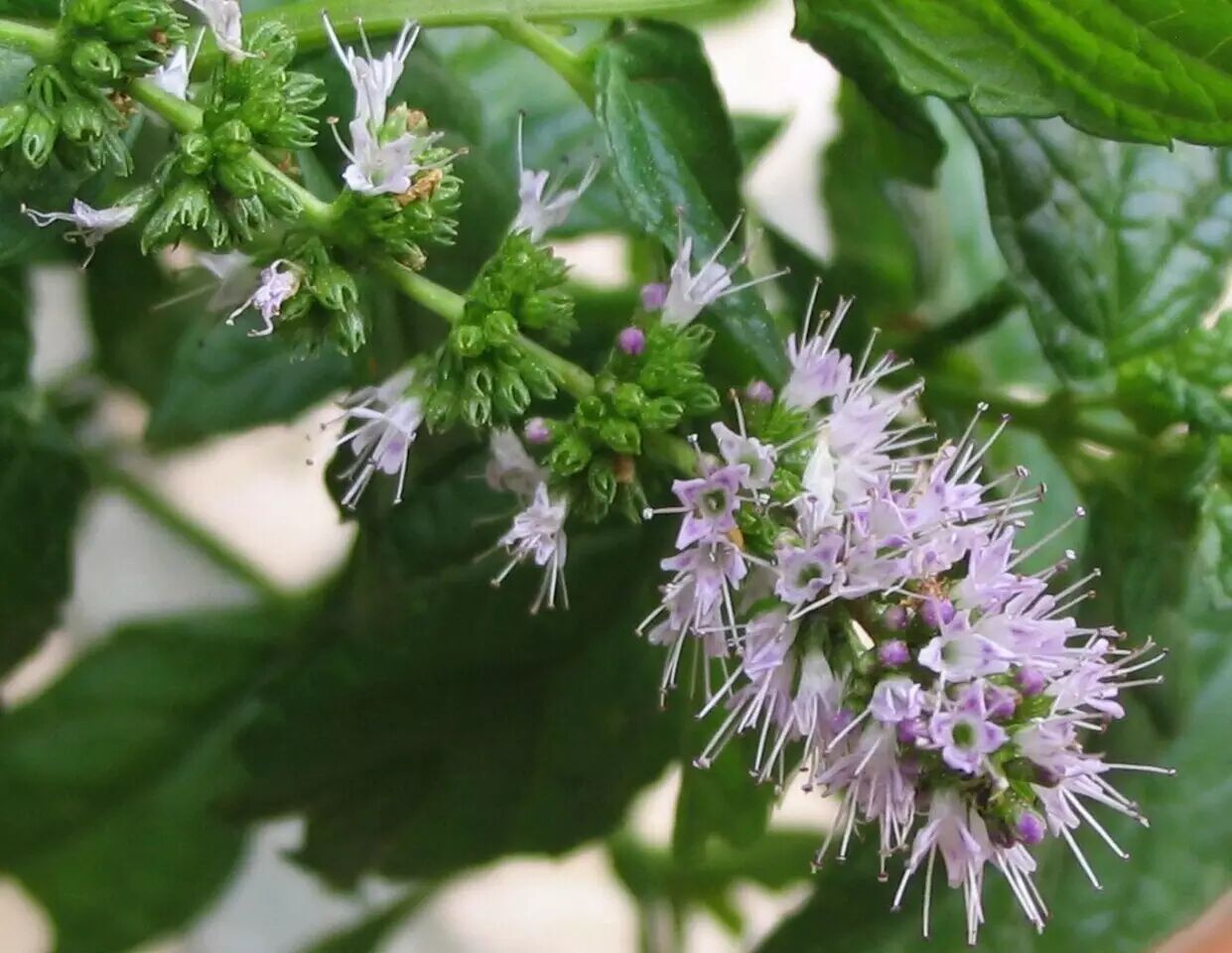 还有一点特别需要注意,薄荷的花朵都开在叶腋,而不在植株顶端聚成穗状。这是区别薄荷,留兰香和皱叶留兰香的标志性区别。