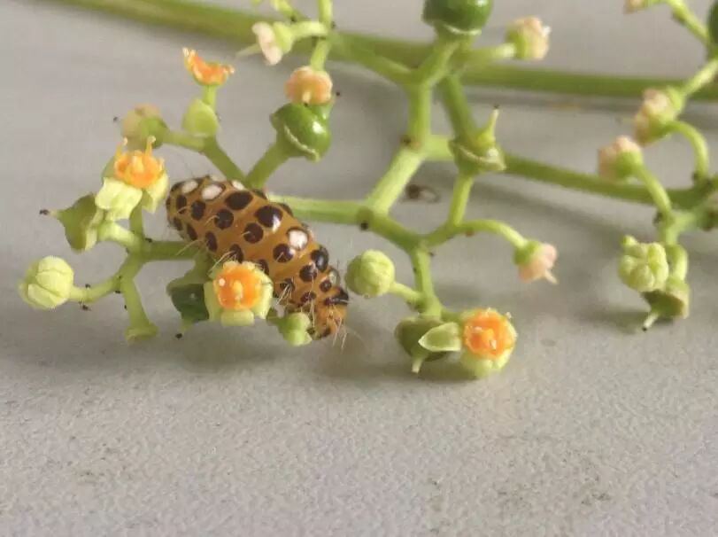 自己养过的一只幼虫取食乌蔹莓花苞 拍摄:霜天蛾(羽化上手图戳这里http://www.guokr.com/post/511337/)