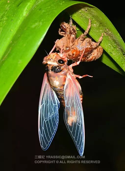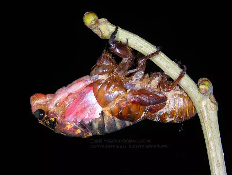 求偶交配完成后,雌蝉就会用腹部末端发达的产卵管插入树干或者枯枝上产卵,卵期长达10个月,在寄主植物组织内或者土壤中越冬。若虫孵化后,就开始了漫长的蝉生。黑蚱蝉的若虫要在土壤中待3-5年甚至更长的时间,它们会蜕五次皮,每蜕一次皮就长大一点。若虫阶段俗称知了猴,蝉蛹,其实蝉是不完全变态的昆虫,不存在蛹的阶段,所以蝉蛹这个词本身也不太科学。无论科不科学,这个阶段是最容易被捕捉和抓来吃的阶段,据说肉质也挺鲜美。
