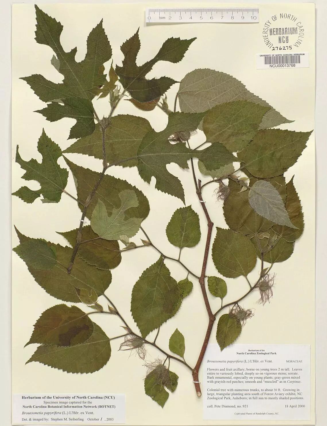 图2:这一份标本上就能看到构树多变的叶形。图片来源:http://www.ibiblio.org/