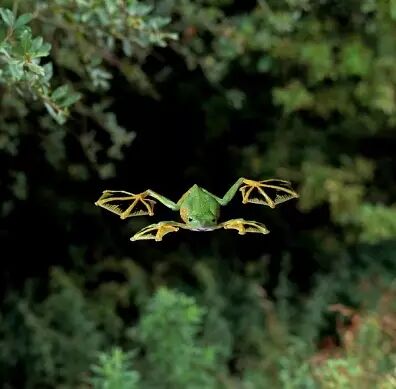 ↑空中 飞蛙并不是真的飞行,而是借助风力滑翔