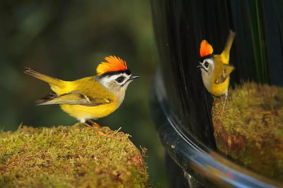 台湾戴菊雄鸟受到镜面倒影的刺激竖起顶冠(图片来源:gallery.dcview)