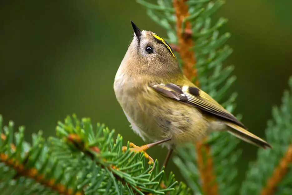 戴菊(Regulus regulus)是鸟如其名的头顶顶着一朵“菊花”的圆球形小鸟,令人见之难忘(如果这些不足10厘米的在树冠里上下乱窜的它们能够被你观察到的话)。