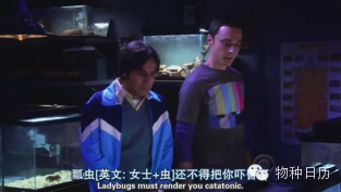 瓢虫的英文一般称为ladybug(或ladybird),字面意思为虫女士,还比较高雅,不过虫女士们大部分可是吃肉的,七星瓢虫也是肉食系女士中的一员,难怪《生活大爆炸》里又怕女人又怕虫的草食系暖男Raj会被嘲笑害怕瓢虫了。