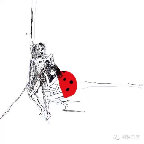 七星瓢虫Coccinella septempunctata是国内最常见的瓢虫之一,作为小时候就熟识的“花大姐”家族成员,它的出镜率最高。其标志是红色鞘翅上的七颗黑斑,以及前胸背板上的两个大白斑,还有头上也有两个小白斑,看起来像好玩的卡通人物。