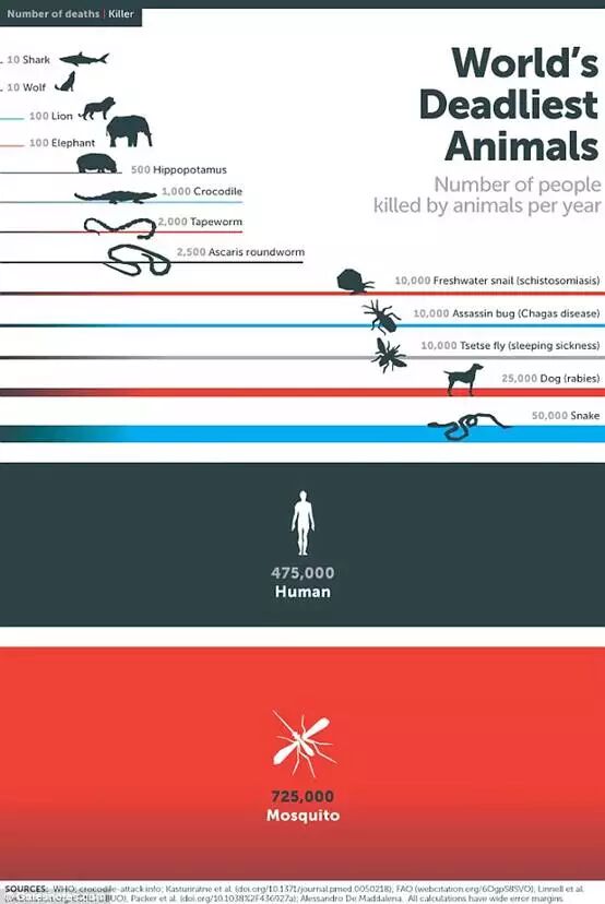 以传播疟疾的按蚊为首的蚊子联军是地球上每年杀人最多的动物。图片来自dailymail.co.uk