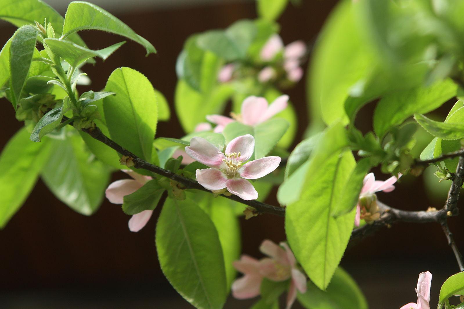 上面这张图里的果实并非皱皮,因为它还新鲜。皱皮木瓜这个名字实际上是沿用了中药的名称,表示其果实干燥后皱缩。与之相应,木瓜属属长C. sinensis的果实干燥后表面是光滑的,于是药名为光皮木瓜。这两种植物外形区别比较大。木瓜是落叶乔木,没有刺,因为树皮成块剥落而使得树干呈现斑驳的颜色(有点像白皮松);花单生,后于叶开放,花瓣淡粉红色。皱皮木瓜是落叶灌木,有很多短枝形成的刺;花3-5朵簇生,先叶开放,花瓣颜色从白色到深红色都有。皱皮木瓜是在东亚、欧洲和北美广为栽培的木本花卉,它的花类似同属于苹果族的海棠,但没有海棠那细长的花梗,所以也被叫做贴梗海棠。由于枝条有刺,这种植物也被用作绿篱。现在正是皱皮木瓜开花的时候,我国温带地区的城市公园、花坛里经常能看到。