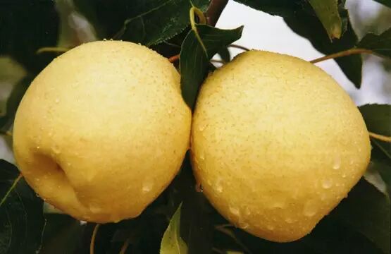 因为吃起来还需要一个复杂的加工流程,秋子梨显然无法满足广大吃货的需求,因此它的继任者白梨成了梨家族的代言人,而且大有一统江湖之势。白梨的栽培之广可能超出你的想象:著名梨种包括京白梨、河北鸭梨、莱阳茌梨、砀山酥梨、赵州雪花梨等等,统统是白梨家族的成员。白梨的特点是鲜食性能好,直接从树上摘下来,擦擦灰土就可以大嚼了。另外,它们还十分漂亮,亮黄色搭配小褐点已然是梨的“标准配色”——也不知道是好看让人觉得更好吃,还是好吃让得大家觉得更好看。
