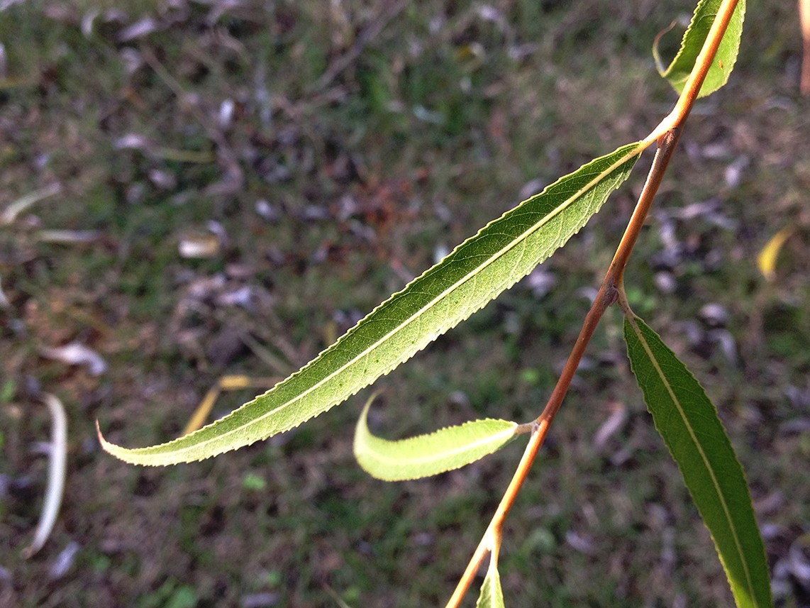 垂柳发褐的小枝和十分狭长的线状披针形的叶。(来源:自摄)