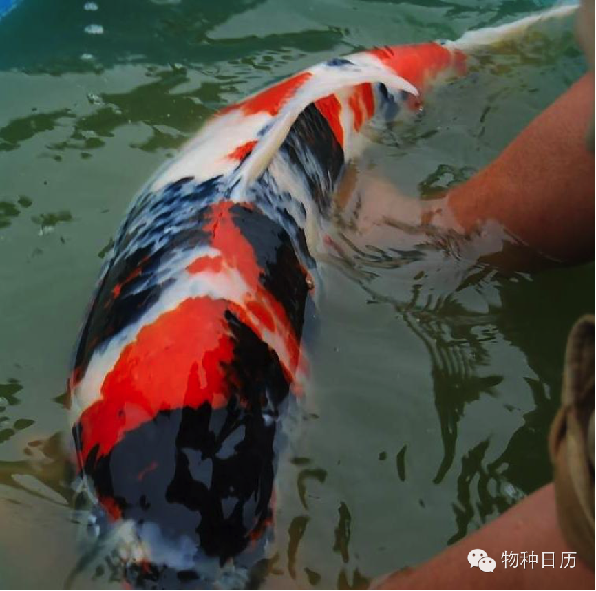 除了肉食鲤鱼(尽管它常因多刺寡味被人诟病),还有专门用来观赏的亚种:锦鲤(Cyprinus carpio haematopterus)。它的体型比普通鲤鱼更加颀长,普通鲤鱼的鱼头和体长比约为1:3.5,而锦鲤可达1:4-1:5(有没有想到前几天猪的进化图!)