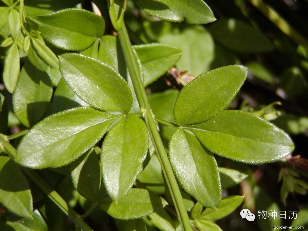 花谢之后,迎春会长出深绿色的复叶。迎春花具三出复叶,复叶对生,小叶卵圆形或者椭圆形,基部楔形,前端也会收拢变尖。它们的叶片呈革质,除了主脉外,迎春花小叶的其它叶脉并不明显。这样质地的叶片让它们可以适应干燥的环境。