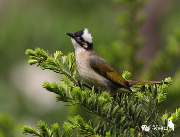 繁殖期鸣唱的白头鹎雄鸟,枕部的白色羽毛蓬开显得更大。(摄影:@鹰之舞 )