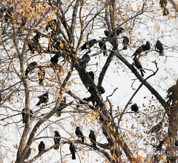 达乌里寒鸦在冬季喜欢集群活动,一群可以由几十只到数百只个体组成,多则可达数万只。想象一下数万只达乌里寒鸦边发出降调“啊啊”的叫声边从你的头顶或者远方天空中飞过,形成一大团延绵不绝的黑雾,全部飞过去甚至需要半个小时到一个小时的场景。实际上这样壮观的景象是可以在冬季看到的,如果你运气特别“好”的话(@红嘴蓝鹊 就是其中之一)。无论在城市还是郊区,冬季都有机会看到成群的寒鸦飞过。