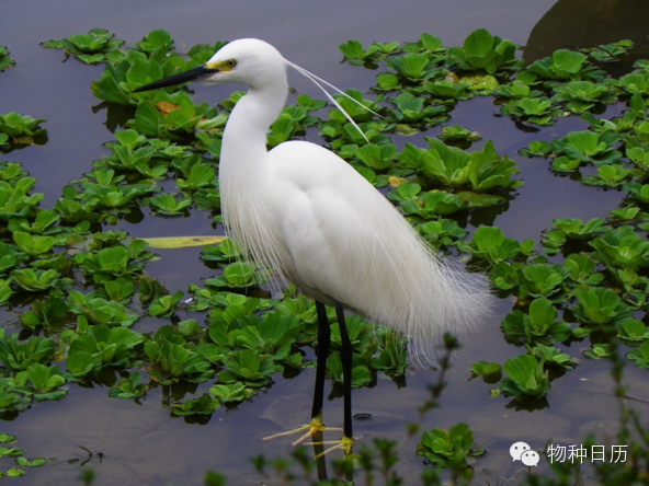 白鹭繁殖羽,可见垂在脑后的“小辫”(图片来源:wiki)