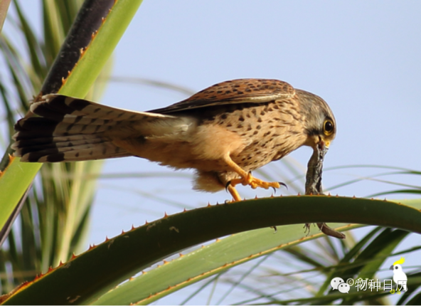 红隼(雌)叼着蜥蜴准备喂小鸟(摄影:@鹰之舞 )
