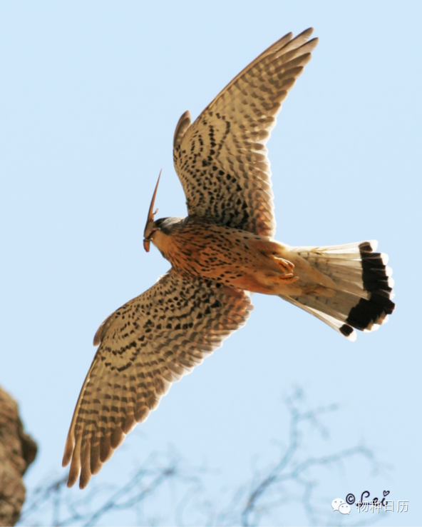 红隼(雌)叼着蜥蜴飞过(摄影:@红嘴蓝鹊 )