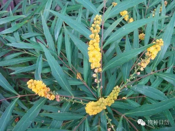 十大功劳(Mahonia fortunei)的别名非常多,当人们提起功劳木、木黄连、竹叶黄连、铁八卦、西风竹、猫儿头、山黄连、土黄连或者黄天竹的时候,说的都是这种植物。虽然绝大多数时候是被当做传统药物被提起,但是这种常绿小灌木本身还是很可爱的。