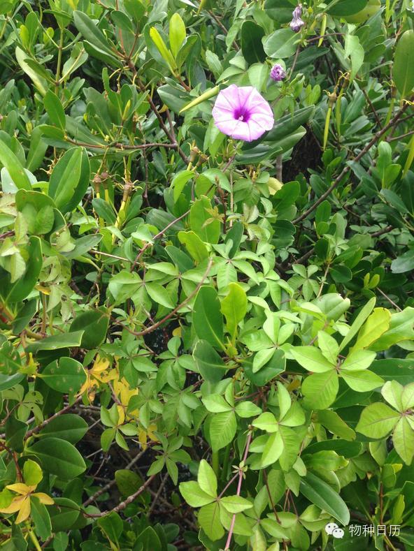 五爪金龙的其他几个英文名大有深意。Coast morning glory海岸牵牛花,描述了它的生境。这个种的原产地已经不可考,大概是非洲或热带亚洲,已经在全球热带和亚热带地区归化,在中国东南沿海乃至低海拔地区非常多见。Railroad creeper铁路藤,可能是说它在铁路两侧常见,暗示它的传播是人为因素。Mile-a-minute Vine日行千里藤,形容其蔓延之迅速。于是,一个“入侵植物”的形象就呼之欲出了。五爪金龙在全世界很多地方都造成了值得关注的生态问题。尽管它不会直接伤害其他植物,但它的叶片非常密集,覆盖在其他植物上时会导致其缺乏阳光衰弱而死。在中国东南沿海的岛屿比如鼓浪屿上就能看到这样的现象。此外,五爪金龙的适应能力也很强,连长在咸水里的红树林都可以爬上去祸害。