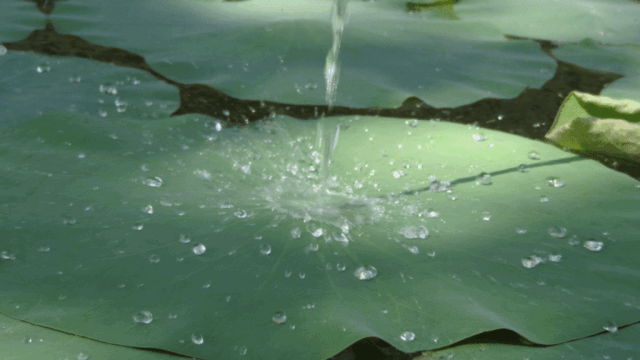 荷叶表面的超微结构让落在其上的水与荷叶的接触角接近180°,水形成球形水珠,滚动的同时带走叶面的污物,让荷叶有了“超疏水”和“自清洁”的特性 | Aathavan jaffna / wikimedia commons