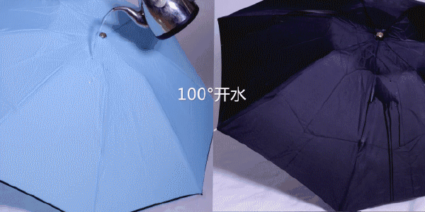 即使被淋上100℃的开水,也无损Rain Smile淋不湿雨伞(左)的疏水和自清洁能力。