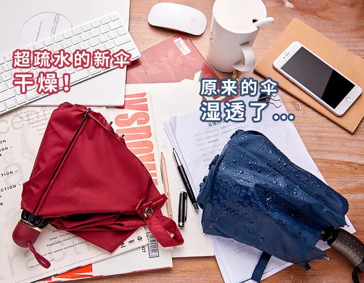 找到症结就要解决问题。只要有伞能像荷叶一般水过不留痕,雨天难题就迎刃而解了!