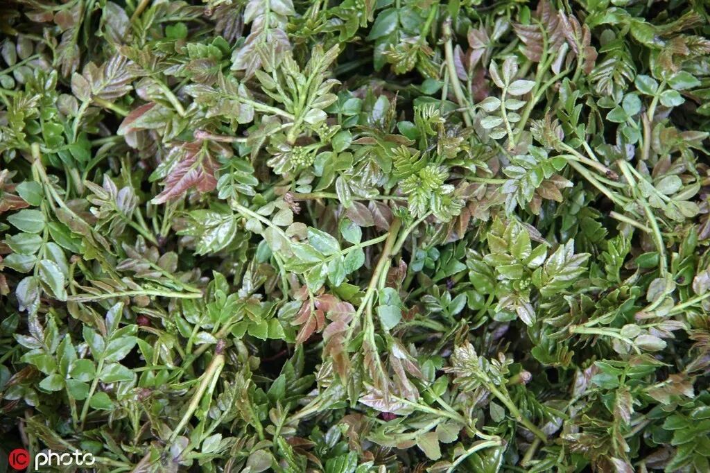 椒蕊是花椒树上初春长出的嫩芽,这东西讲究的就是吃春天最早萌发出来的那一小纂儿嫩芽,人们将其视为佳疏,在北京人心里的地位,完全不在香椿之下。