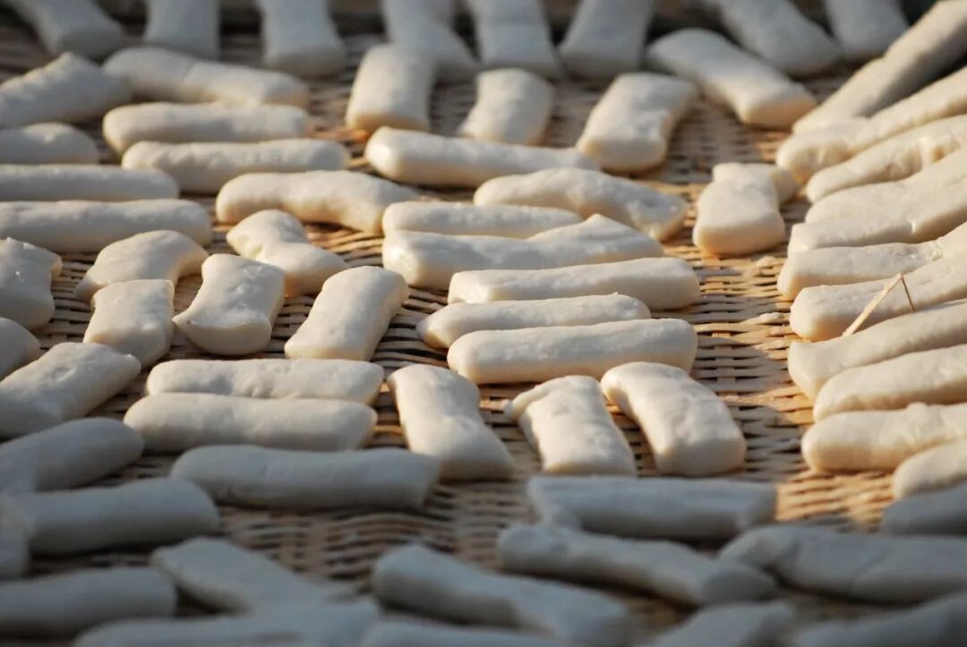 制作过程相似的还有西南地区的糯米糍粑,也是糯米粉蒸熟后经反复捶打制成的,一般是煎或炸至表面金黄焦香后蘸糖吃。而在广东、海南、福建等地方,还有粳米粉、秫米粉或者薯粉等做成的各种“粿”。